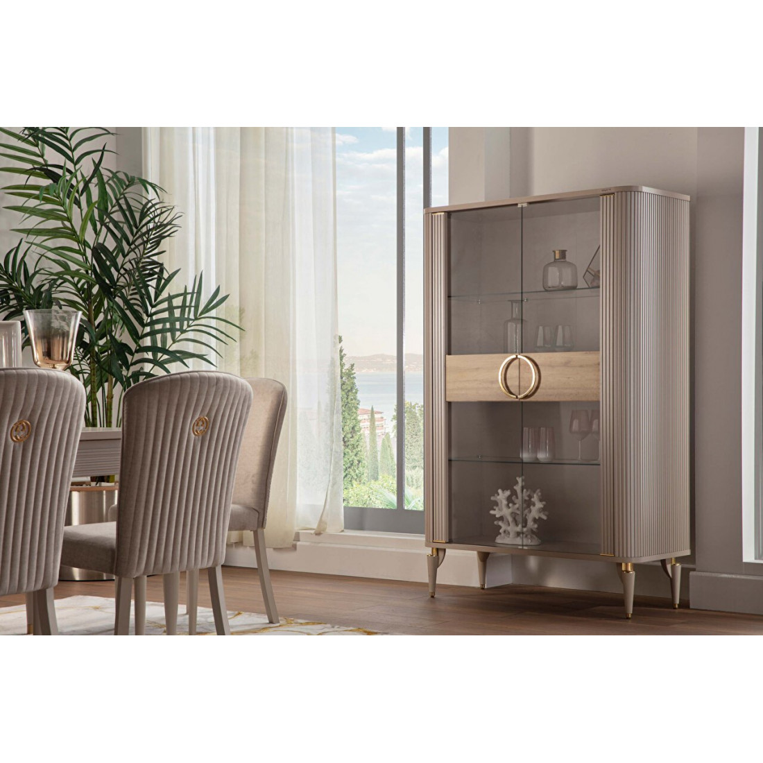 Двухдверная витрина для посуды Санвито SANV-13 один из элементов для гостиной, столовой, залы от турецкого производителя Bellona.