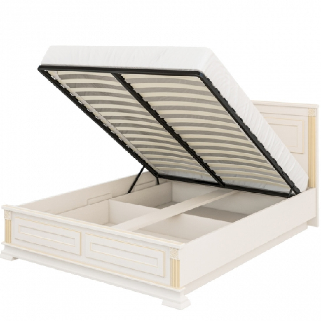 Двуспальная кровать МН-222-12 новой серии Афина от Мебель-Неман выполнена в цвете крем с золотой патиной.