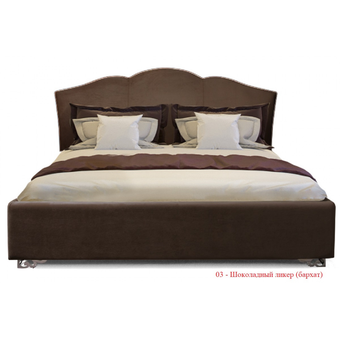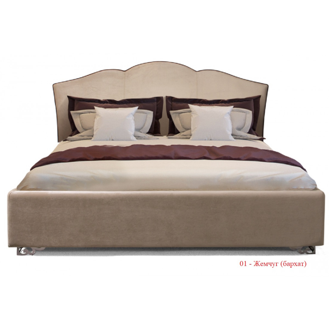Кровать «Lotos» обтянута бархатом итальянского производства. Для выбора Вам доступно два цветовых решения:«шоколадный ликер» (темный вариант) и «жемчужный берег» (светлый вариант):