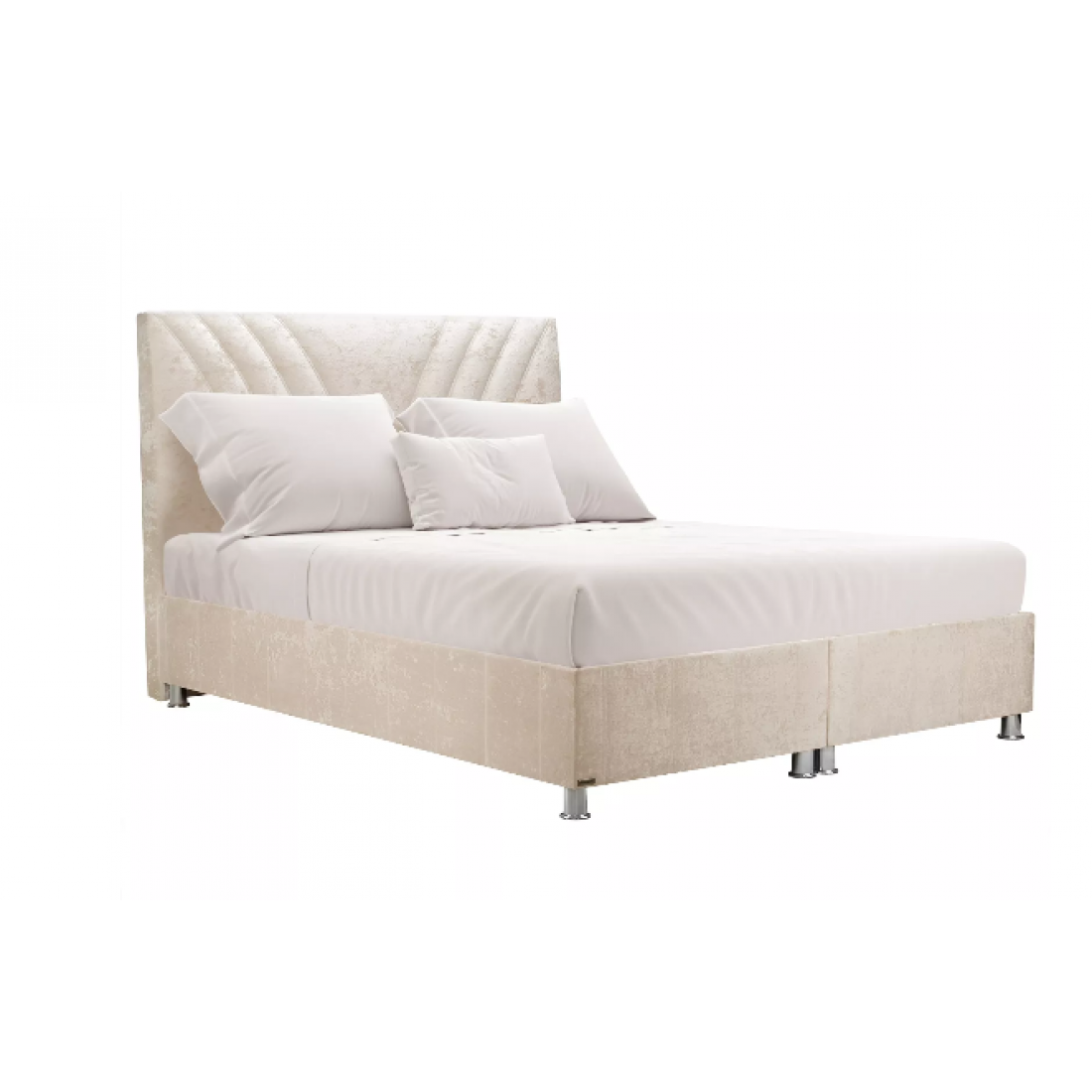 Обивка спинки кровати выполнена из мебельной ткани с декоративной отсрочкой, стежка на пенополиуретане т.18мм, синтепоне 200 г/м2 со спанбондом.