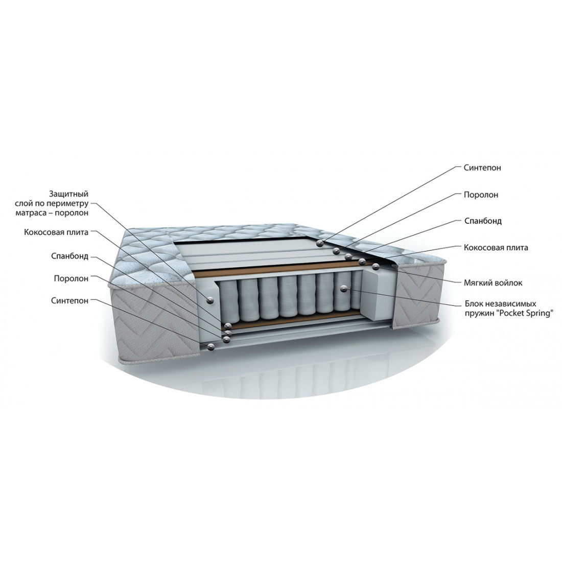 Матрас есть следующих размеров (мм): 1600x2000, 1800x2000.