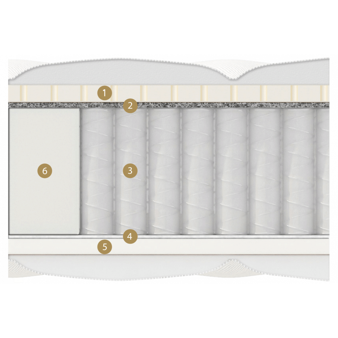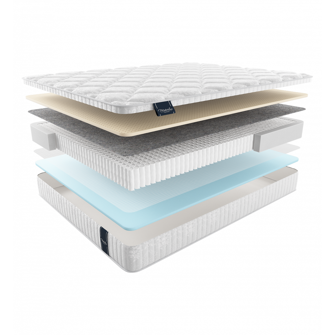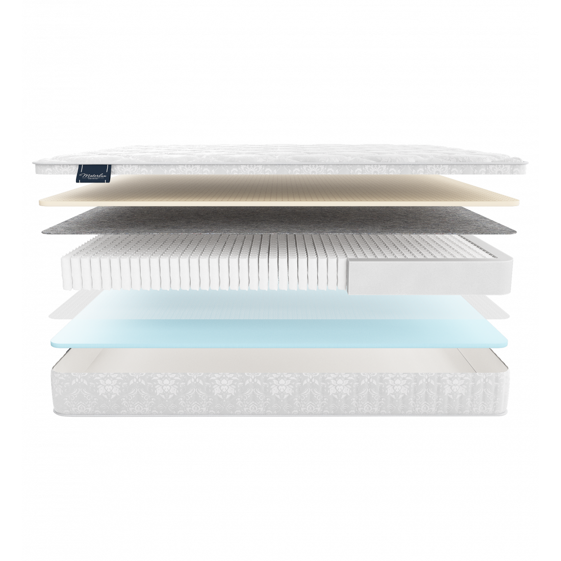 Матрас укомплектован независимым пружинным блоком «Мультипакет» (1040 пружин на спальное место) с уменьшенным диаметром пружин для большей жесткости. А для дополнительного комфорта матрас усилен каркасом 10 см по периметру, что дает ряд дополнительных преимуществ: он прекрасно держит вес, хорошо восстанавливается после нагрузки, а срок его службы становится больше.