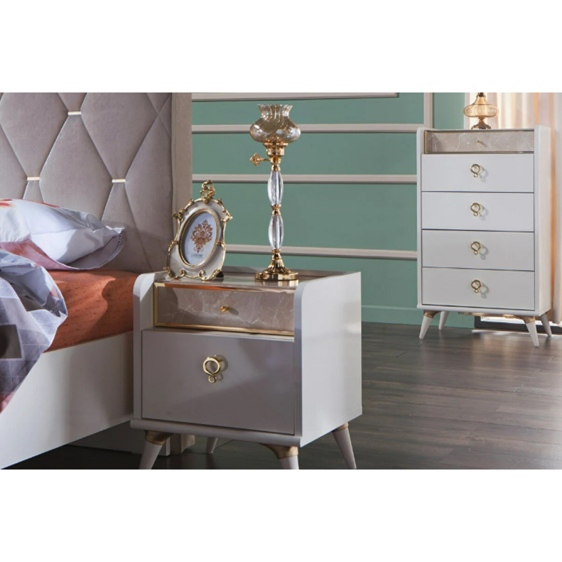 Комод высокий столик Monreal дополнит вашу спальню. В вернем ящике- разделитель отделанный тканью для украшений (можно не ставить). Серия снята с производства