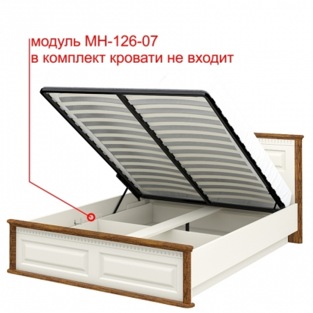 Двуспальная кровать с подъемным механизмом МН-126-01 новой серии Марсель от Мебель-Неман выполнена в комбинации цветов "крем, дуб кантри".