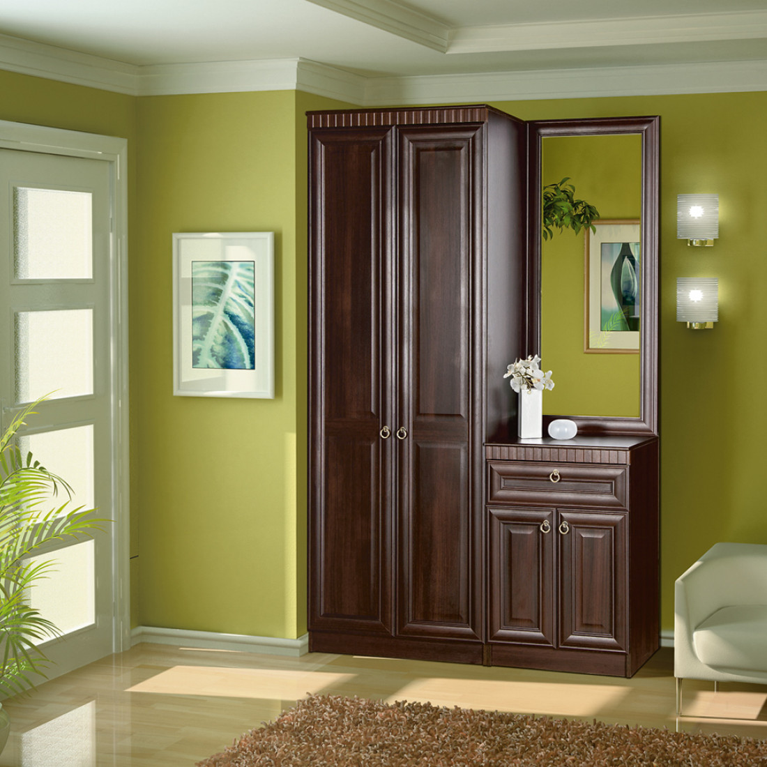 Угловой шкаф с зеркалом для прихожей Инна 621 темный