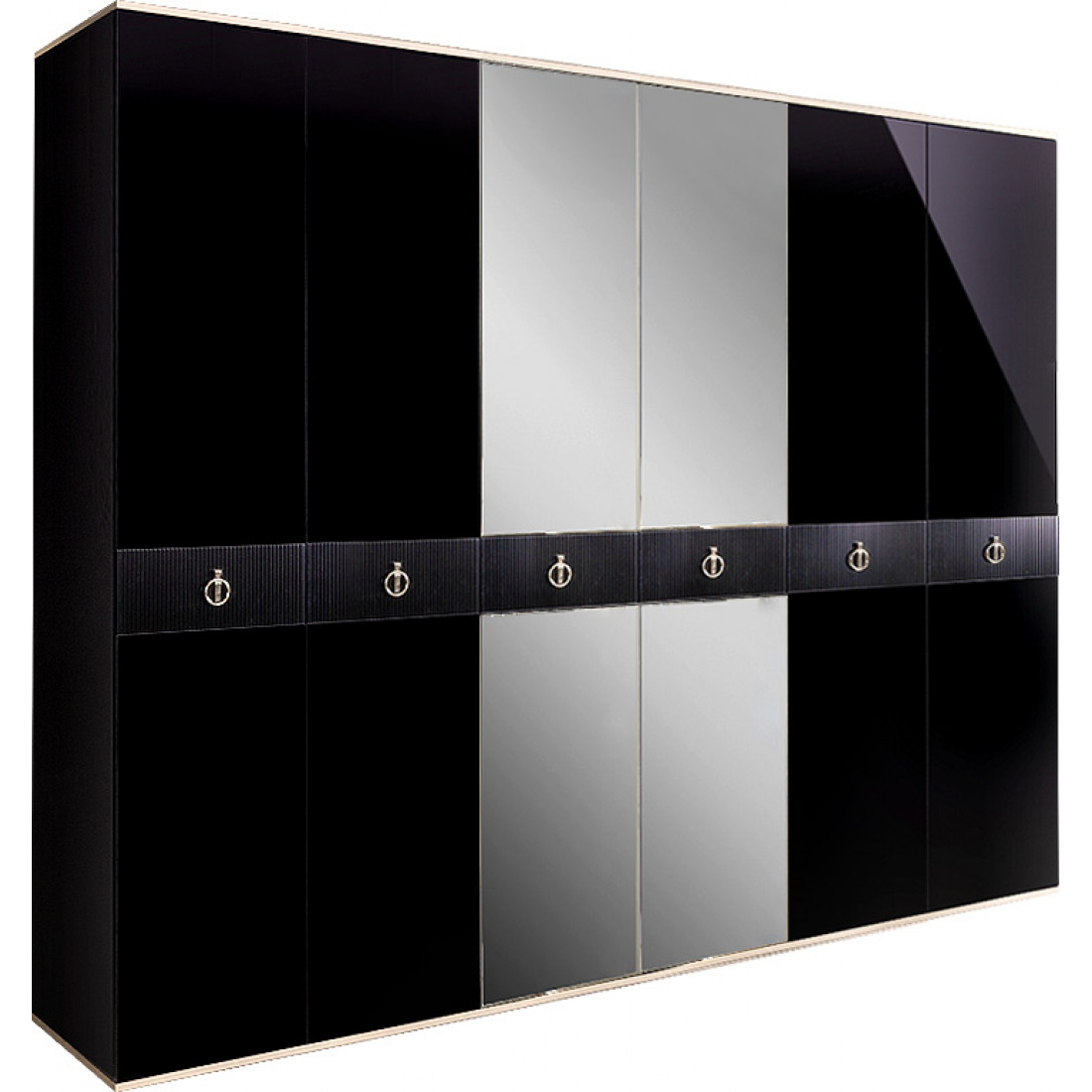 Шестистворчатый шкаф для одежды с зеркалом Rimini Solo РМШ1/6 (s) (черный)