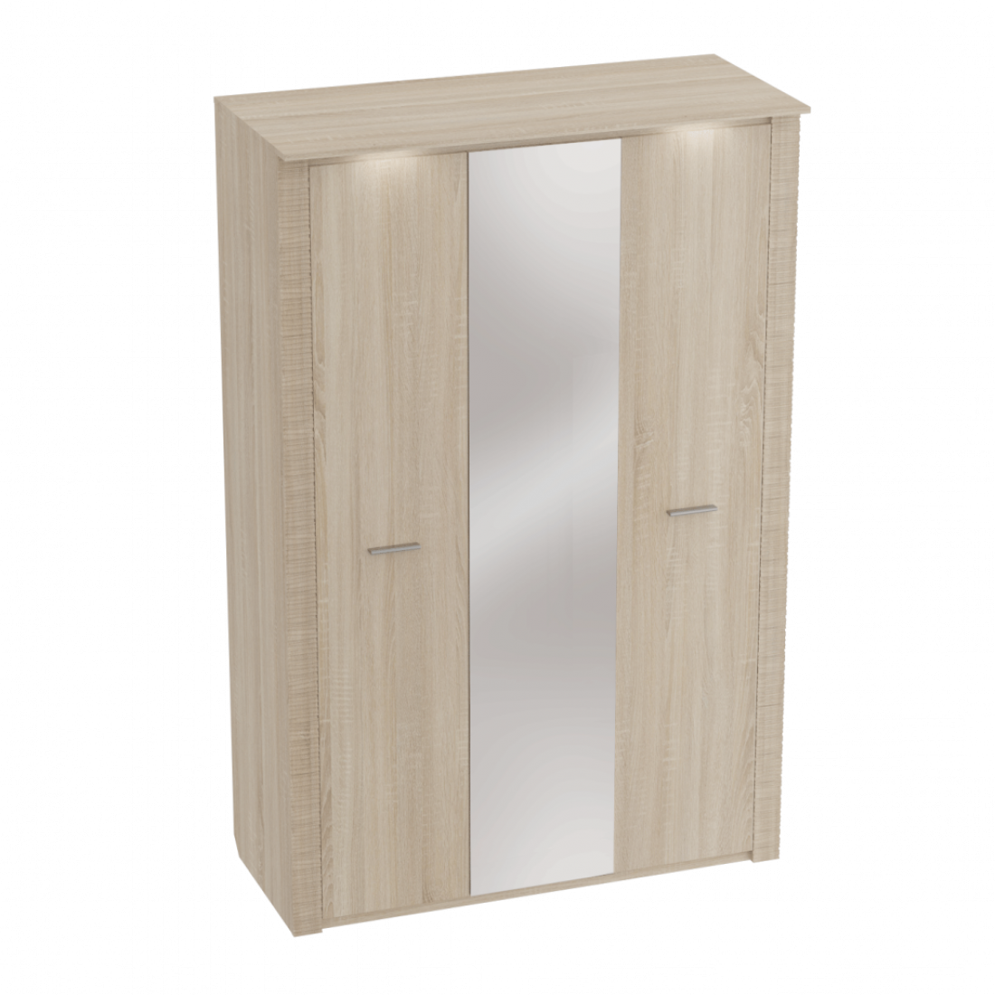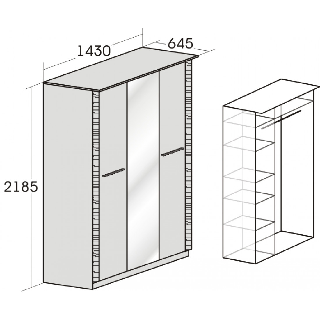 Шкаф 3-х дверный зеркальный Неаполь Ясень анкор светлый (патина "серебро")