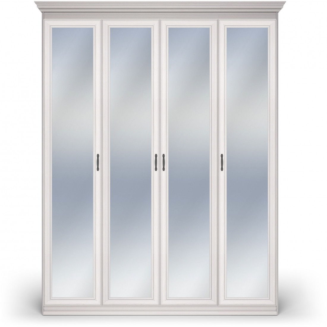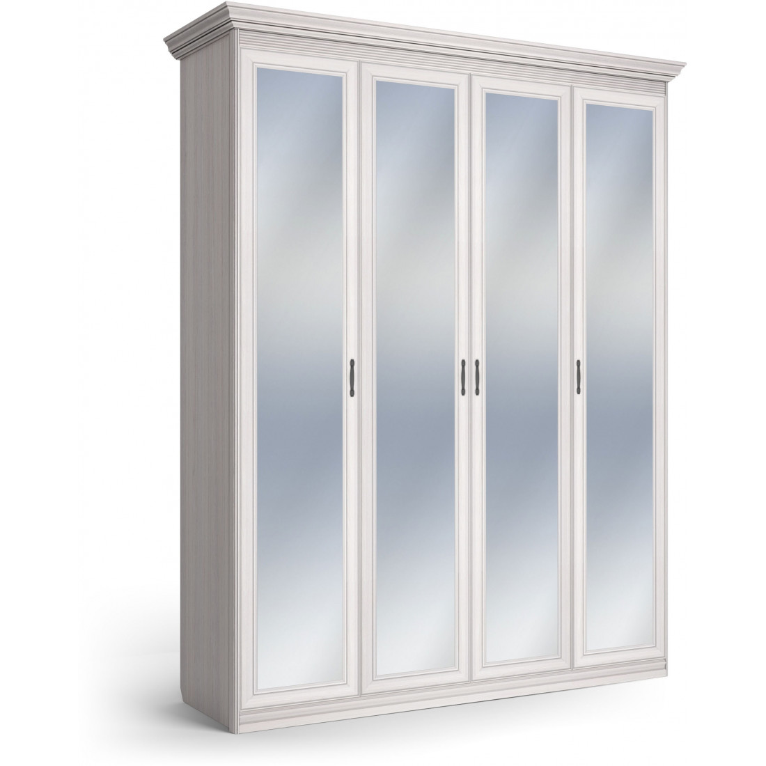 Шкаф 4-х дверный зеркальный Неаполь Ясень анкор светлый (патина "серебро")