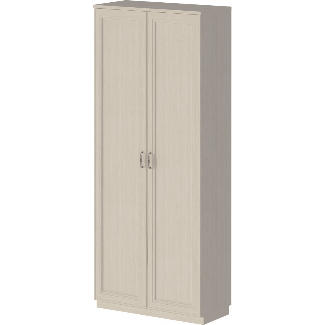 -За фасадами: вверху - полка ЛДСП под головные уборы, предполагающая крепление выдвижной перекладины для плечиков. Справа – узкая секция с полками;