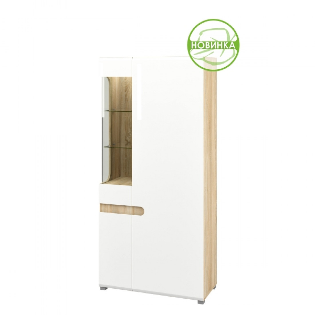 Двухстворчатый шкаф витрина для посуды в гостиную Леонардо МН-026-01/1 белый левый