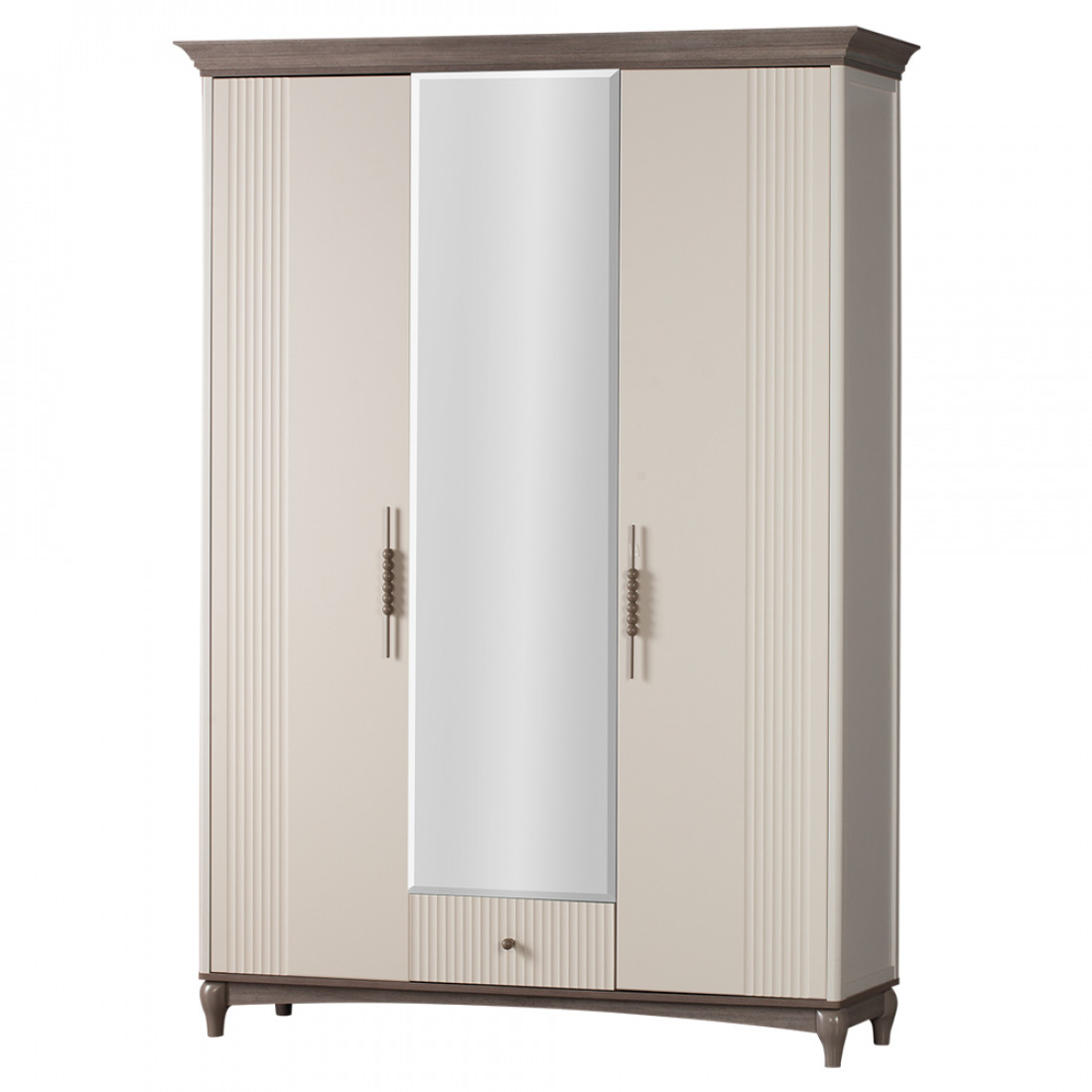 Фасады: МДФ, декор – кашемир серый, зеркало с фацетом