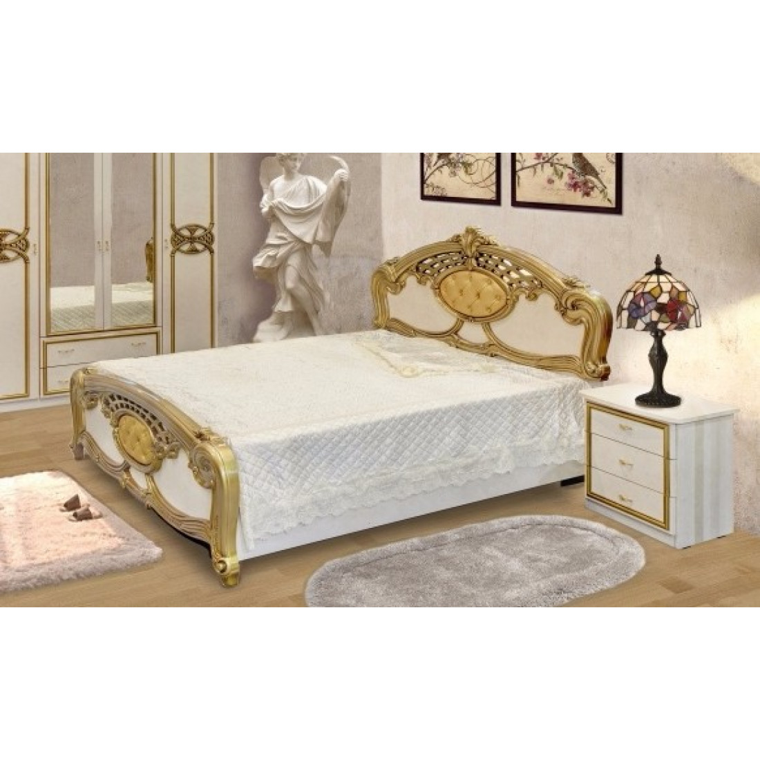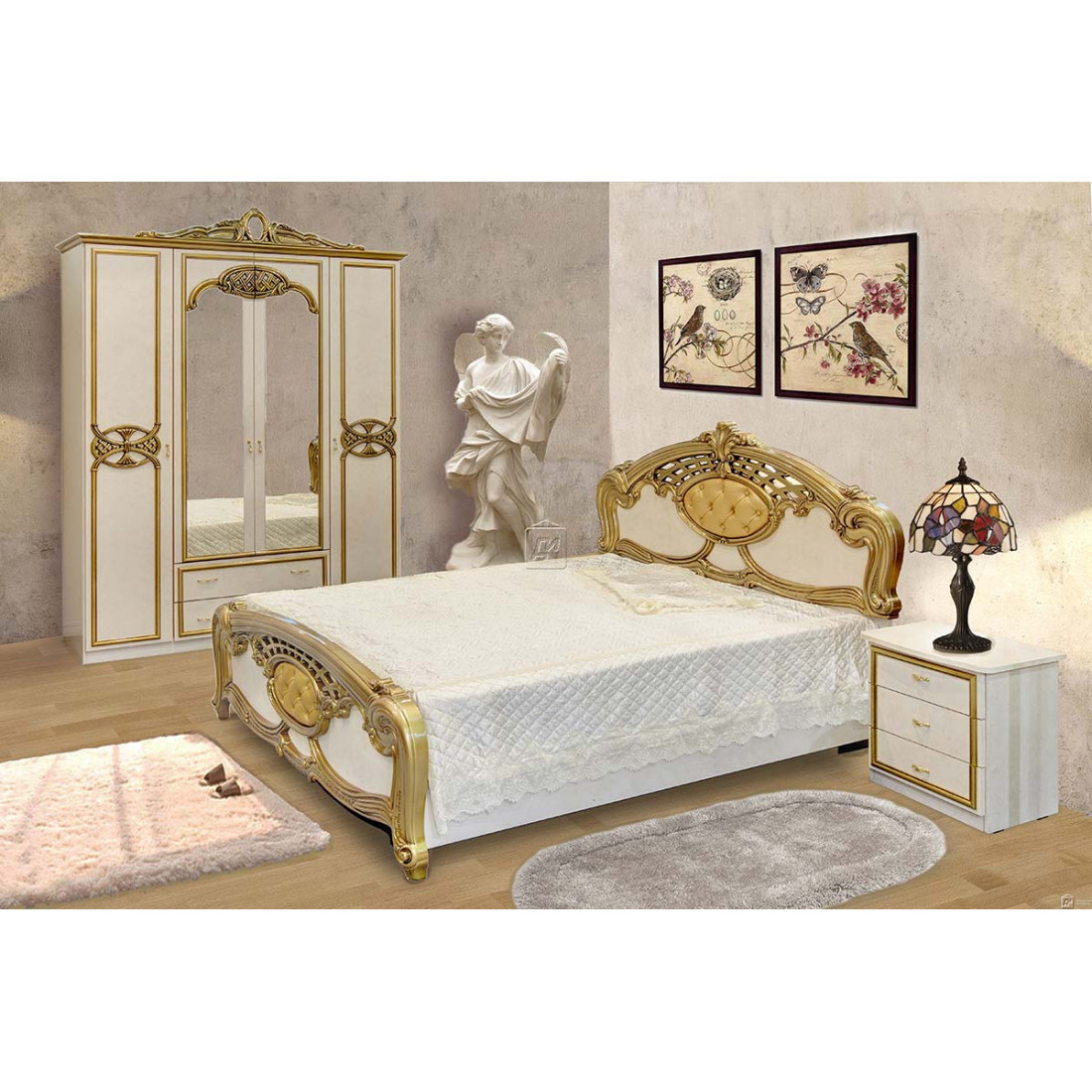 Спальня Ольга (беж) от Российской фабрики «ДИА мебель» выполнена в изящном бежевом цвете в сочетании с золотыми вставками и матовым покрытием. Фасад спальни украшен резными деревянными вставками, что сделает атмосферу богатой и роскошной. Такая спальня поможет вам почувствовать прелесть отдыха и окунуться в настоящий сон. Коллекция "Ольга" подойдет для настоящих ценителей классического стиля.