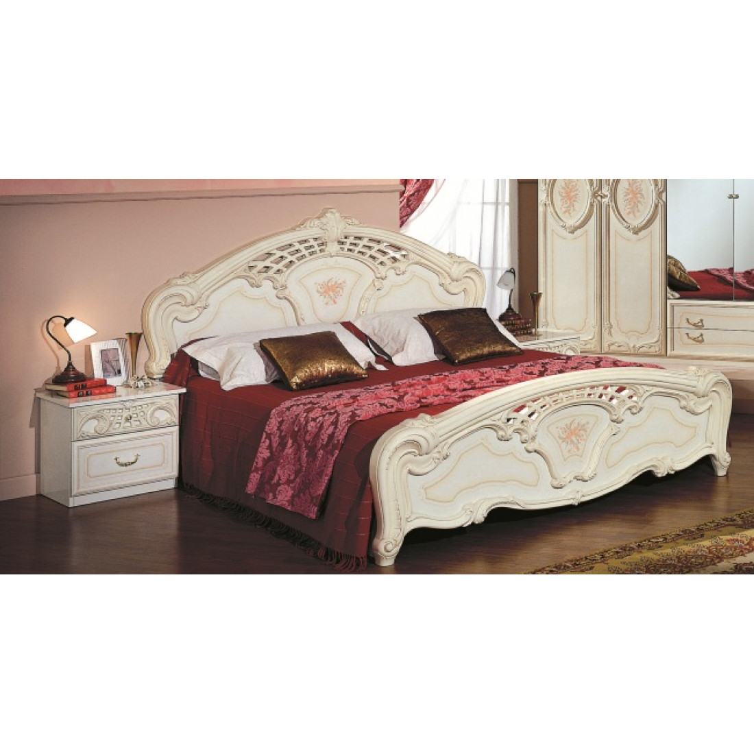 Спальня Роза (беж) от Российской фабрики "ДИА мебель". Выполнена в классическом стиле. Такая спальня коллекции Роза порадует Вас своим дизайном и многофункциональностью. Бежевый цвет в сочетании с глянцевым покрытием и орнаментом на фасадах, придает этой модели еще изысканности и подчеркивает прекрасное чувство стиля своего владельца. Поможет насладиться прекрасным вечером после трудного дня.
