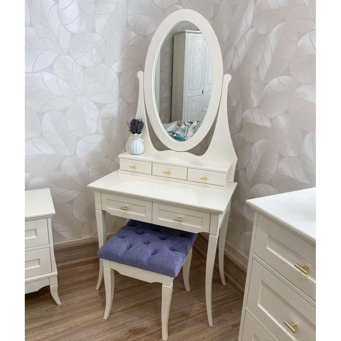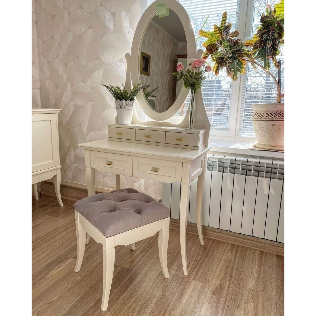 Туалетный столик (дамский набор) Римини MUR-118-07 с круглым зеркалом воплощает в себе классические тренды. Сочетание изящных оттенков удачно освежит Ваш интерьер и придаст знакомым формам новое дыхание. Неповторимые легкость и элегантность этой мебели создадут атмосферу тепла и уюта в Вашем доме.