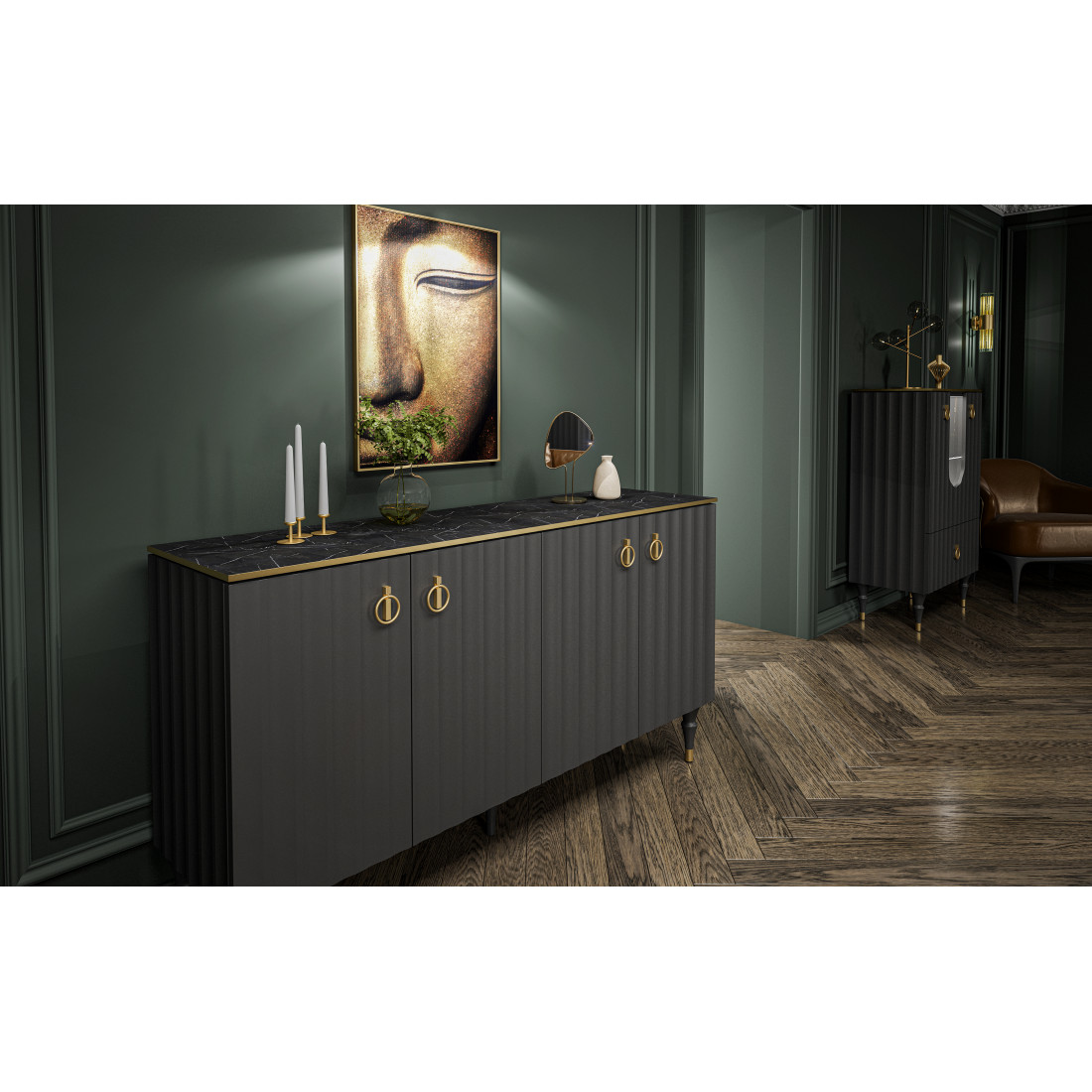 Большая тумба в гостиную МН-043-04 серии Лоренсо от фабрики Мебель-Неман.Петли с доводчиками, рассчитанные на десятки тысяч циклов закрывания, работают плавно и бесшумно.Фасады и боковые панели в коллекции Лоренсо выполнены с инновационным покрытием Serica от итальянских производителей. Это современное, матовое, антибликовое покрытие, приятное на ощупь SOFT-TOUCH. Поверхность защищена от царапин, благодаря специальной обработке. При возникновении микродефекта, его можно легко устранить с помощью термического сглаживания. Технология ANTI-FINGERPRINT гарантирует отсутствие отпечатков пальцев на фасадах.
