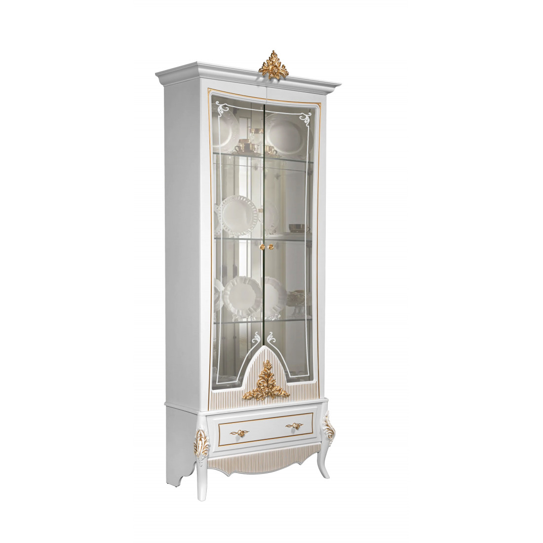 Витрина 2-х дверная в гостиную Стелла (белый золото)